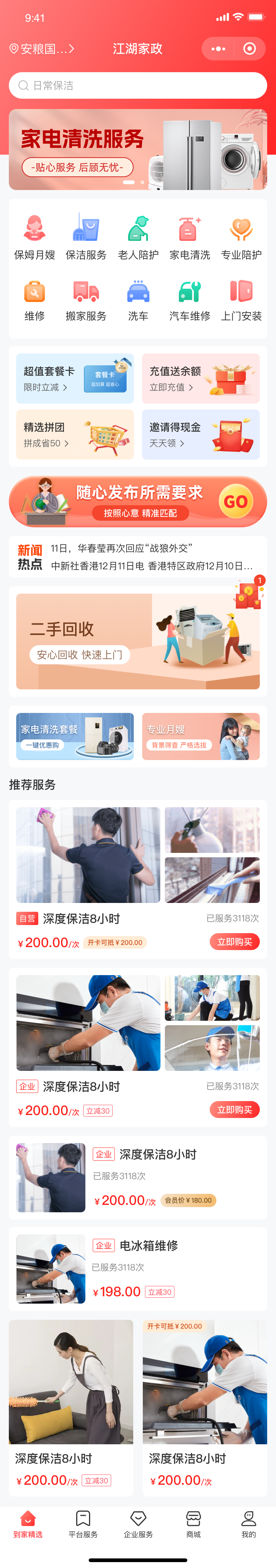 登录后,系统会以分类清晰的界面呈现全品类家政服务。