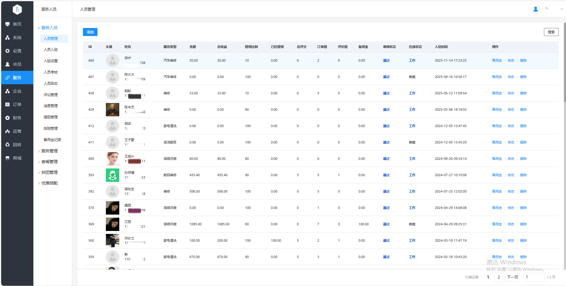 ○ 入驻人员、门店单独管理