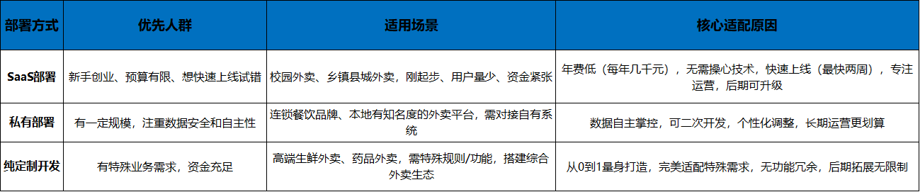 其实外卖系统价格差得多,根本不是“乱报价”,核心就3个原因:部署方式不一样、功能复杂度不同、后续服务有区别。市面上主流的就3种:SaaS部署、私有部署、纯定制开发,每种的价格、优缺点都差很多,咱们一个个说清楚,保证不绕弯。