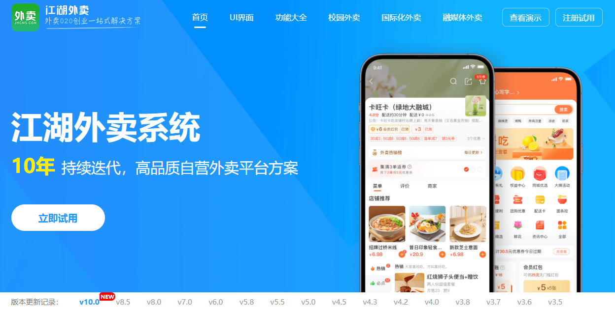 14 年行业经验,近百人技术团队,江湖外卖系统(v10.0) 为标杆产品。