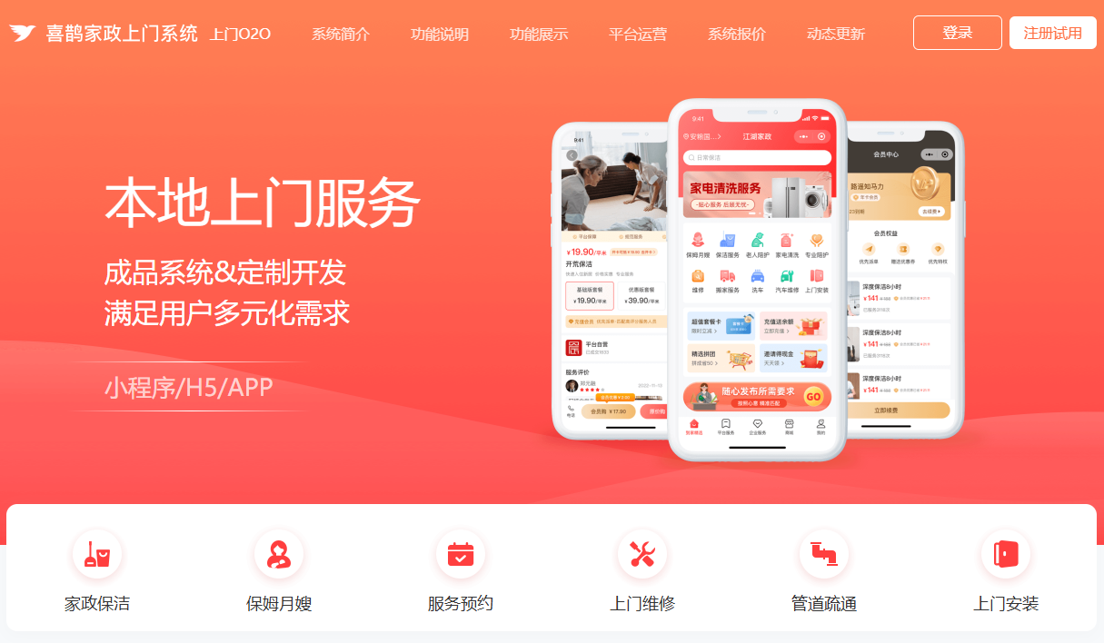 核心定位:全场景闭环家政 O2O 解决方案,从初创小店到连锁巨头全覆盖