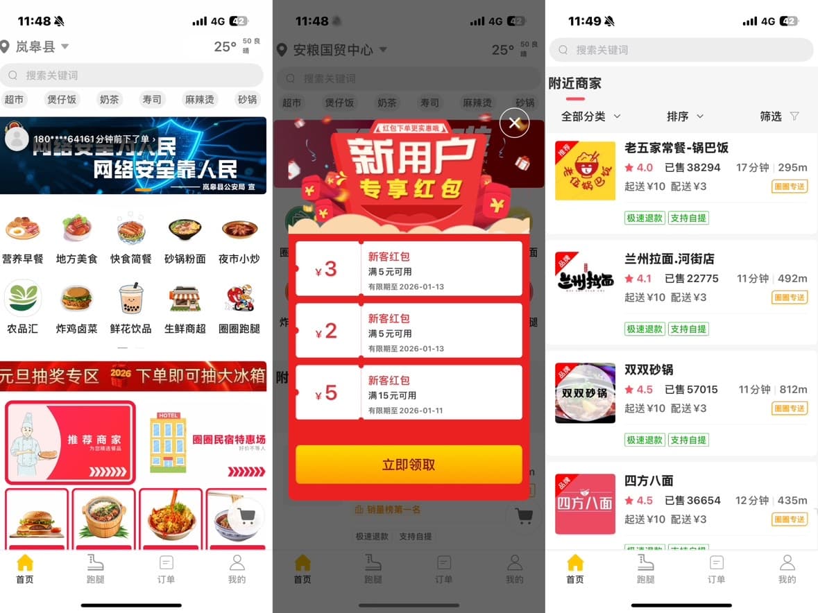实证案例:在陕西省某县城,本地平台「xx到家」使用江湖外卖系统的私有部署版本,目前日单量稳定在12,000+。在午高峰瞬间爆发的下单浪潮中,江湖原生App展现了极强的扛压能力,从未出现漏单、卡死现象。