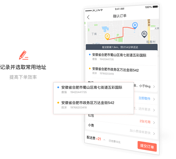 江湖跑腿会自动记录并选取常用的地址,简化下单流程,减少操作步骤,优化用户的下单体验