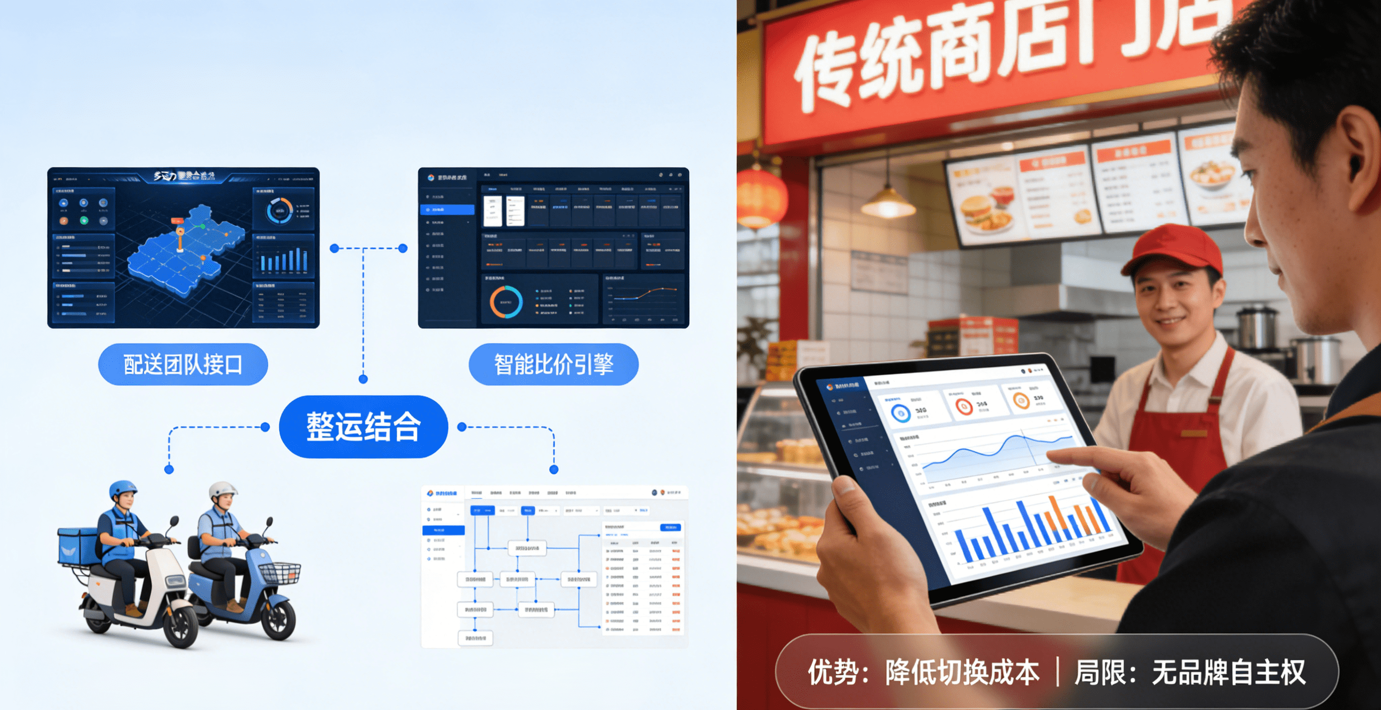 这类系统核心就是整合现有的运力资源,对接多家配送团队或者骑手平台,能实现智能比价、统一派单,最大的好处是帮已有商户体系的老板降低切换成本。但它更像个工具,只能辅佐,没法打造自己的品牌,适合那些订单稳定、只缺配送能力的商家,但是想长期做平台生意的创业者就别考虑了。