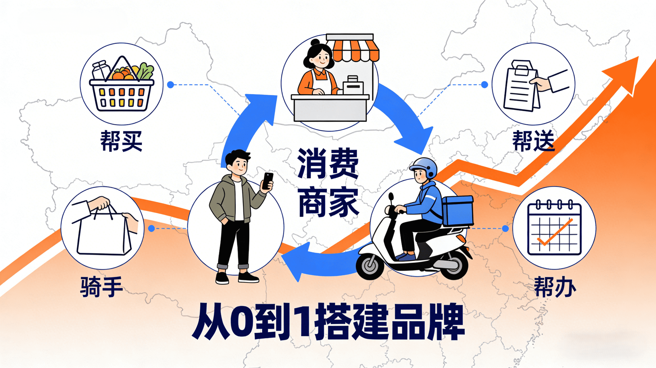 这种模式就全面多了,可以直接覆盖消费者、商家、骑手三方,帮买、帮送、帮办这些常见跑腿业务都能做,还能兼顾品牌建设和用户运营。说白了,就是给你一套能直接落地的平台框架,从0到1帮你搭建属于自己的跑腿品牌,这才是想长期深耕本地市场的创业者的首选。