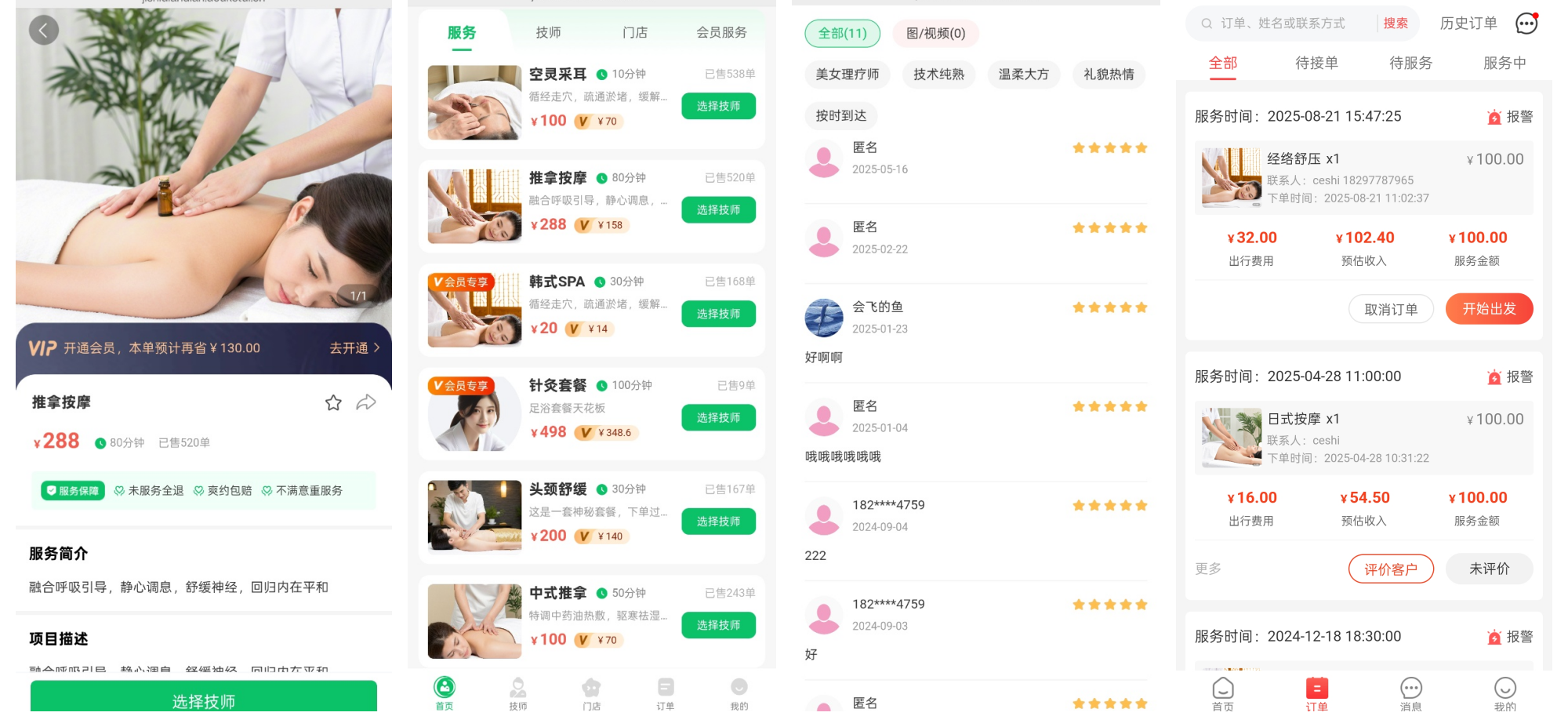 ● 支持一键下单、改时间、加钟