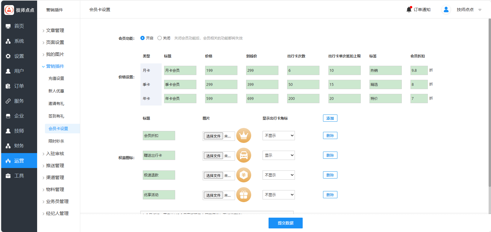 ● 数据展示:提供订单统计、用户画像分析、技师绩效评估等可视化报表