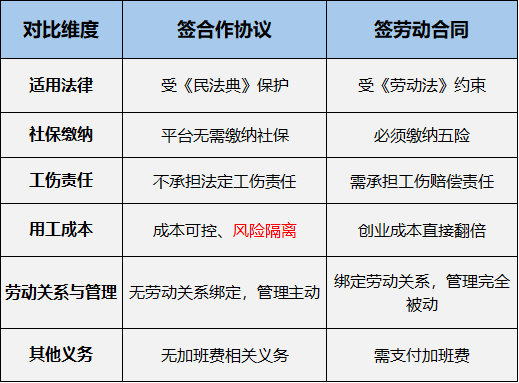 行业里推荐合作协议,本质就是帮创业者把法律关系理清楚,从根源避开劳动雷区。