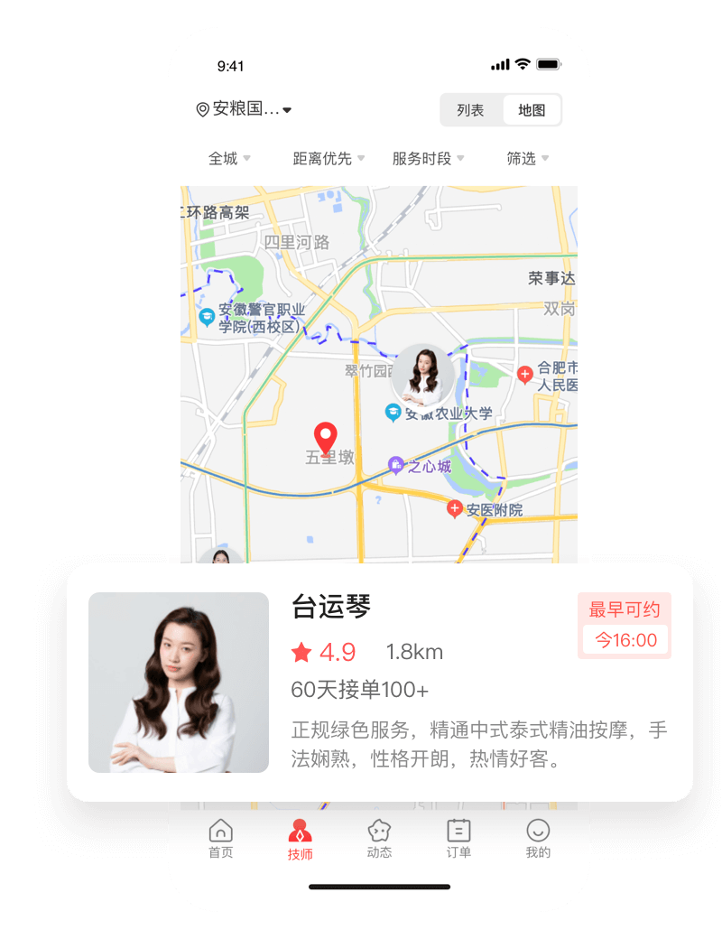 技师上钟前需进行人脸识别检测,只有身份信息与平台备案一致方可开启服务。能从源头杜绝 “冒名顶替” 服务的情况,避免无资质人员提供服务给用户带来安全隐患,同时也能保障正规技师的劳动权益,防止他人盗用身份接单。