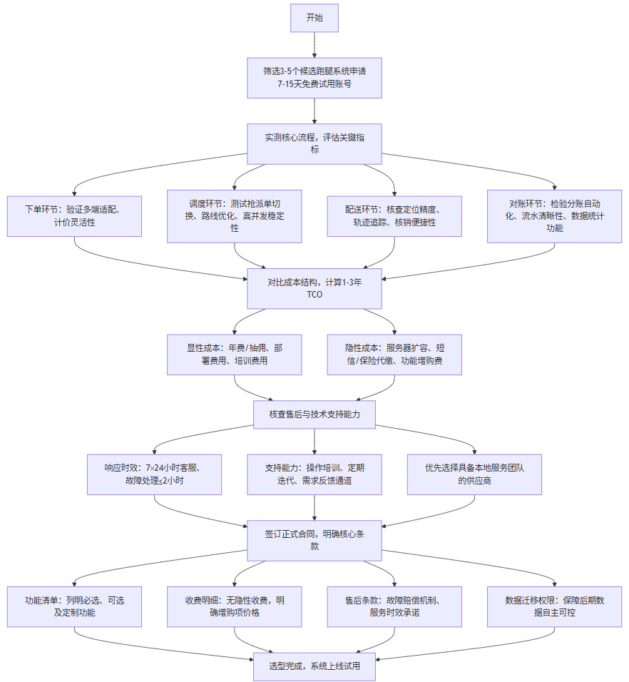 ② 实测核心流程(下单 - 调度 - 配送 - 对账),评估稳定性与易用性。