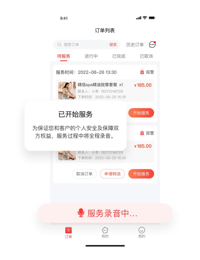 经客户同意后,服务一开始就会自动录音,全程记录双方的沟通和服务过程,既能防止客户恶意诬陷技师,要是出现纠纷,录音也能作为证据,帮双方厘清责任,让技师不用怕“有理说不出”。