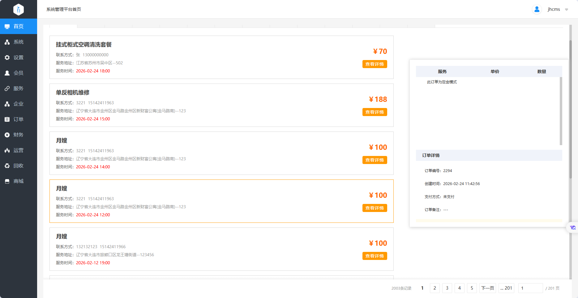 标准SaaS系统往往能满足80%基础需求,足够支撑正常运营,以江湖家政系统SaaS版本为例,核心功能包括: