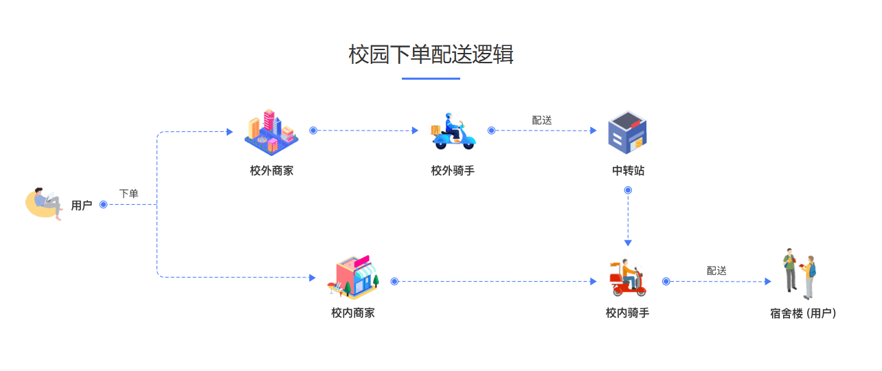 中午 11:30–12:30、晚上 17:30–18:30 是爆单时段。如果调度混乱,很容易崩盘。可以在校内多找兼职骑手丰富运力,合理安排骑手。