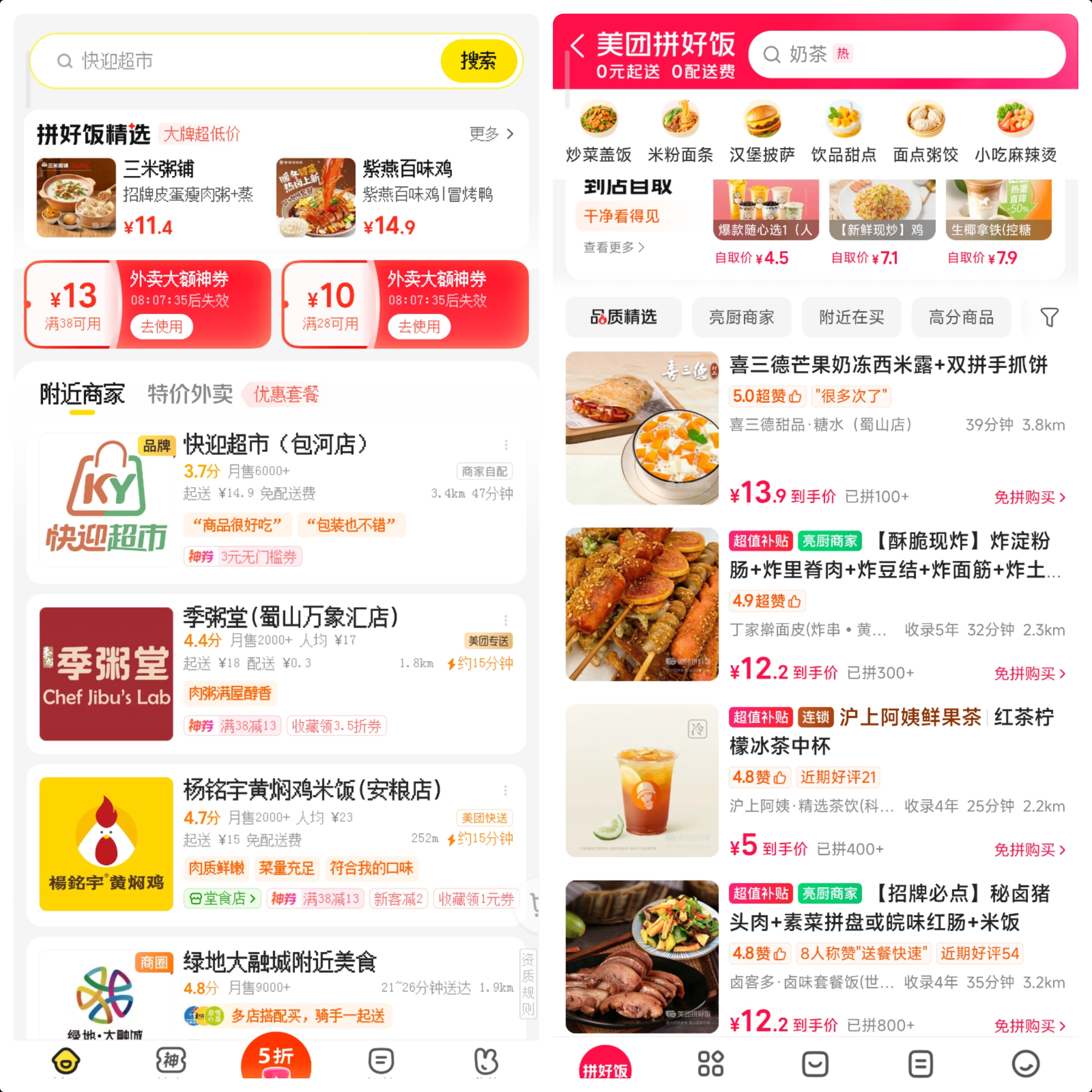 ② 经常用淘宝、想兼顾多种品类(餐饮+生鲜+小百货)、图方便划算:选淘宝闪购,不用额外下载APP,补贴也多;