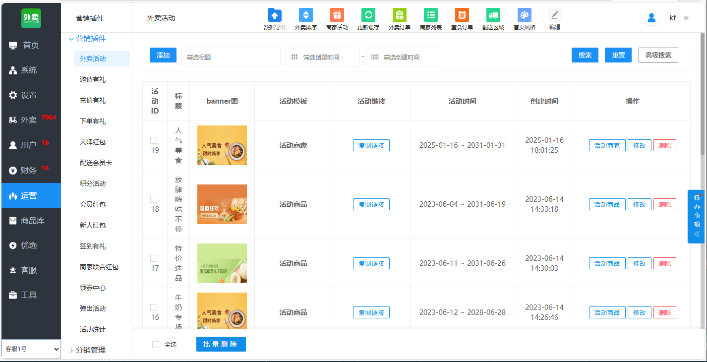 ● 助力品牌打造:支持自定义品牌名称、logo、配送费规则、营销活动等