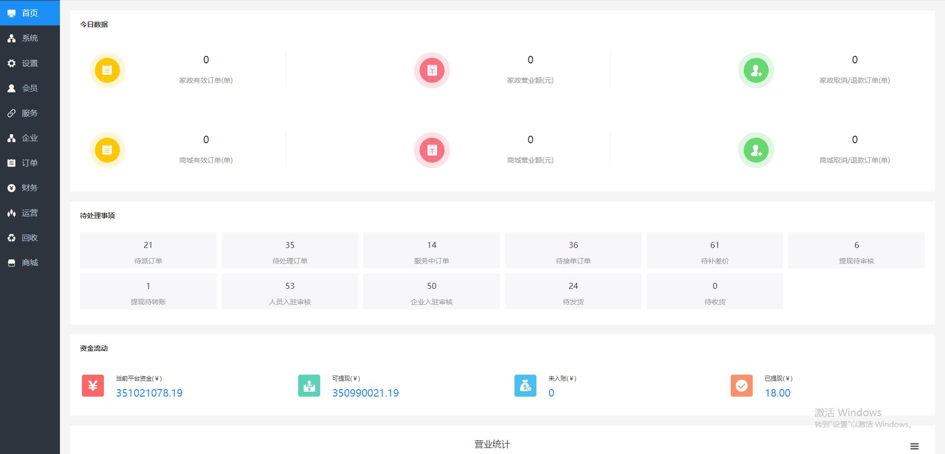 财务管理是平台运营的核心。江湖家政系统的后台会自动统计一些核心数据,比如:
