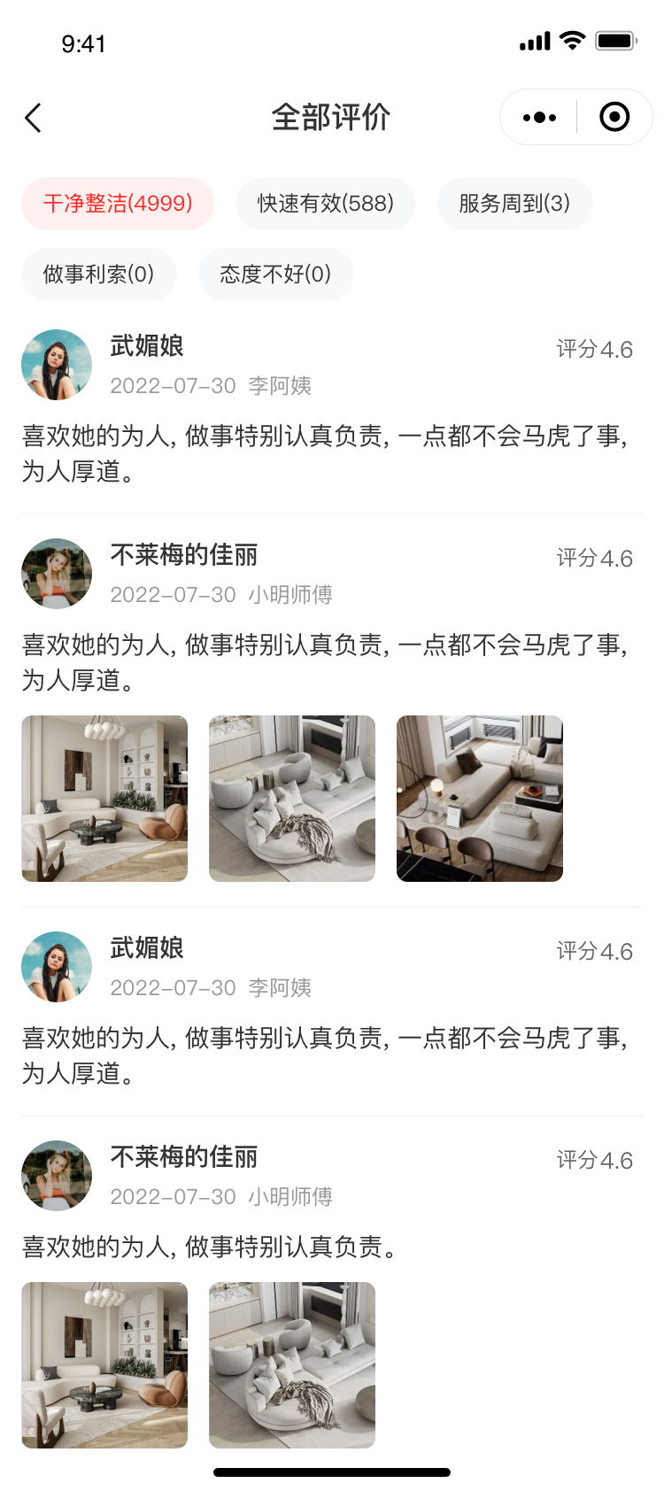 服务完成后,用户会收到自动提醒,可对服务人员进行 1-5 星评分,还能写文字评价、上传照片。这些评价会影响平台对服务人员的派单优先级。同时,江湖家政系统还设置了 “评价审核” 机制,避免恶意差评形成良性循环。