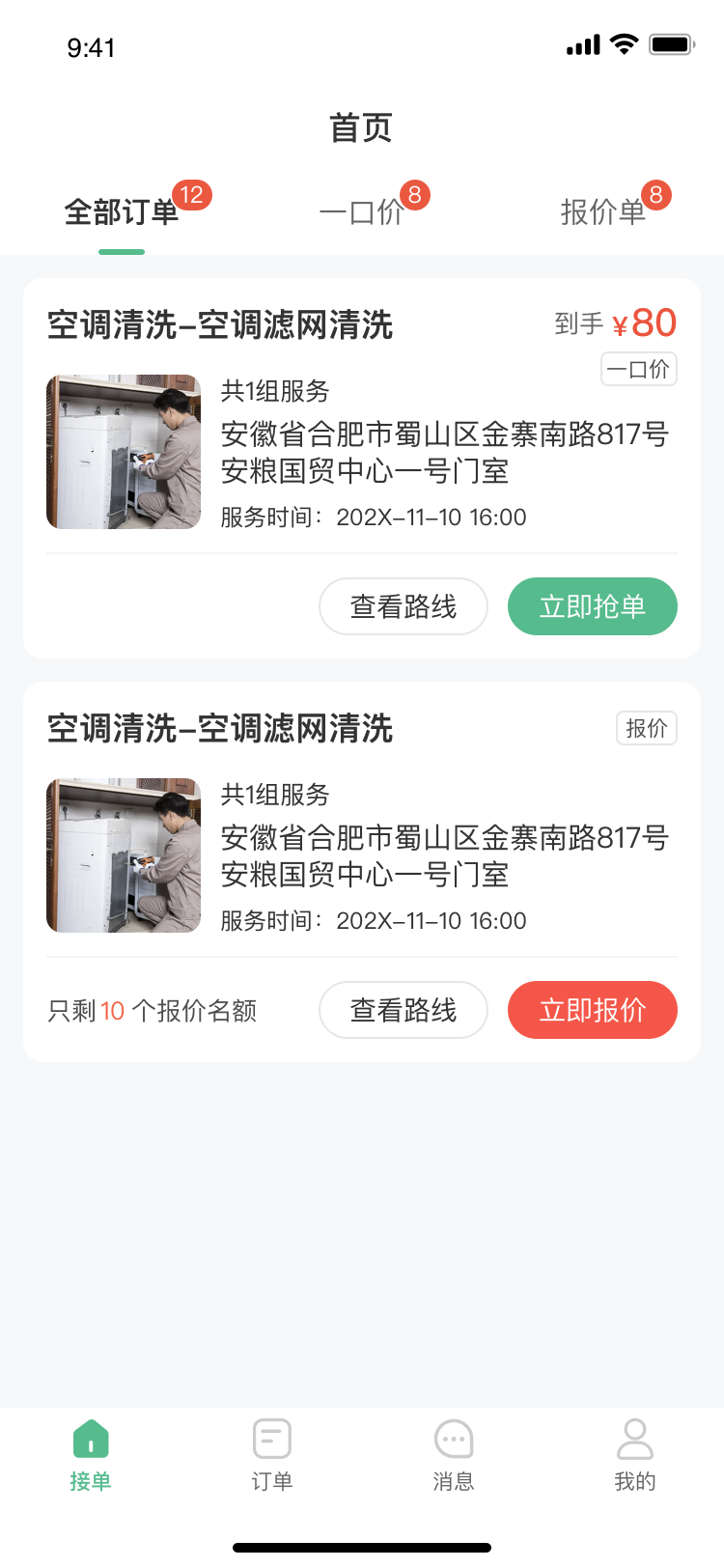 江湖家政系统支持两种接单模式:自主抢单和平台派单。服务人员可以设置自己的可接单时间,系统会根据时间、位置、技能匹配订单,推送到手机上。