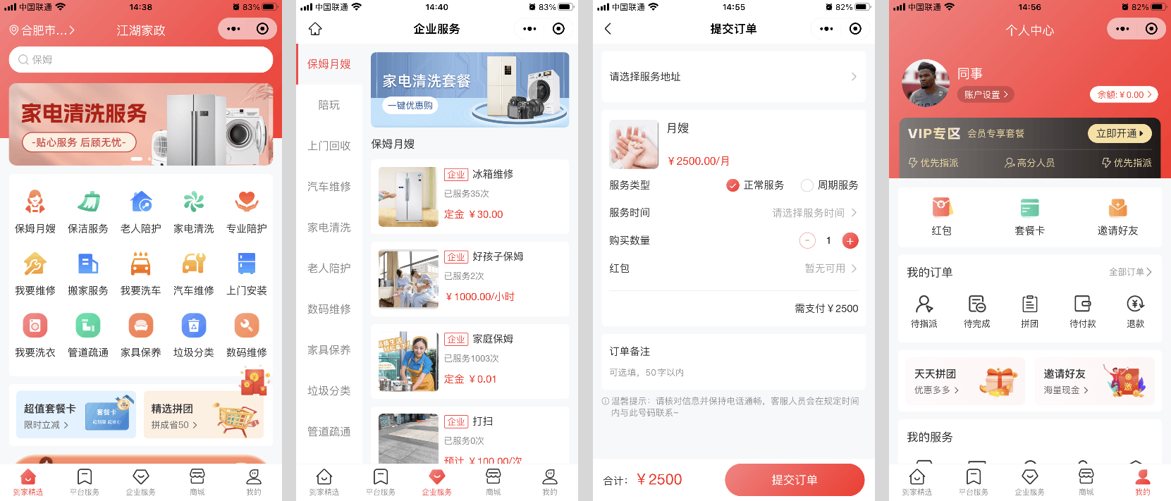 用户端是平台的 “门面”,也是转化的核心,江湖家政系统的用户端主要以微信小程序为主,兼顾 APP,核心目标就一个:让用户 3 分钟内找到服务、完成下单。