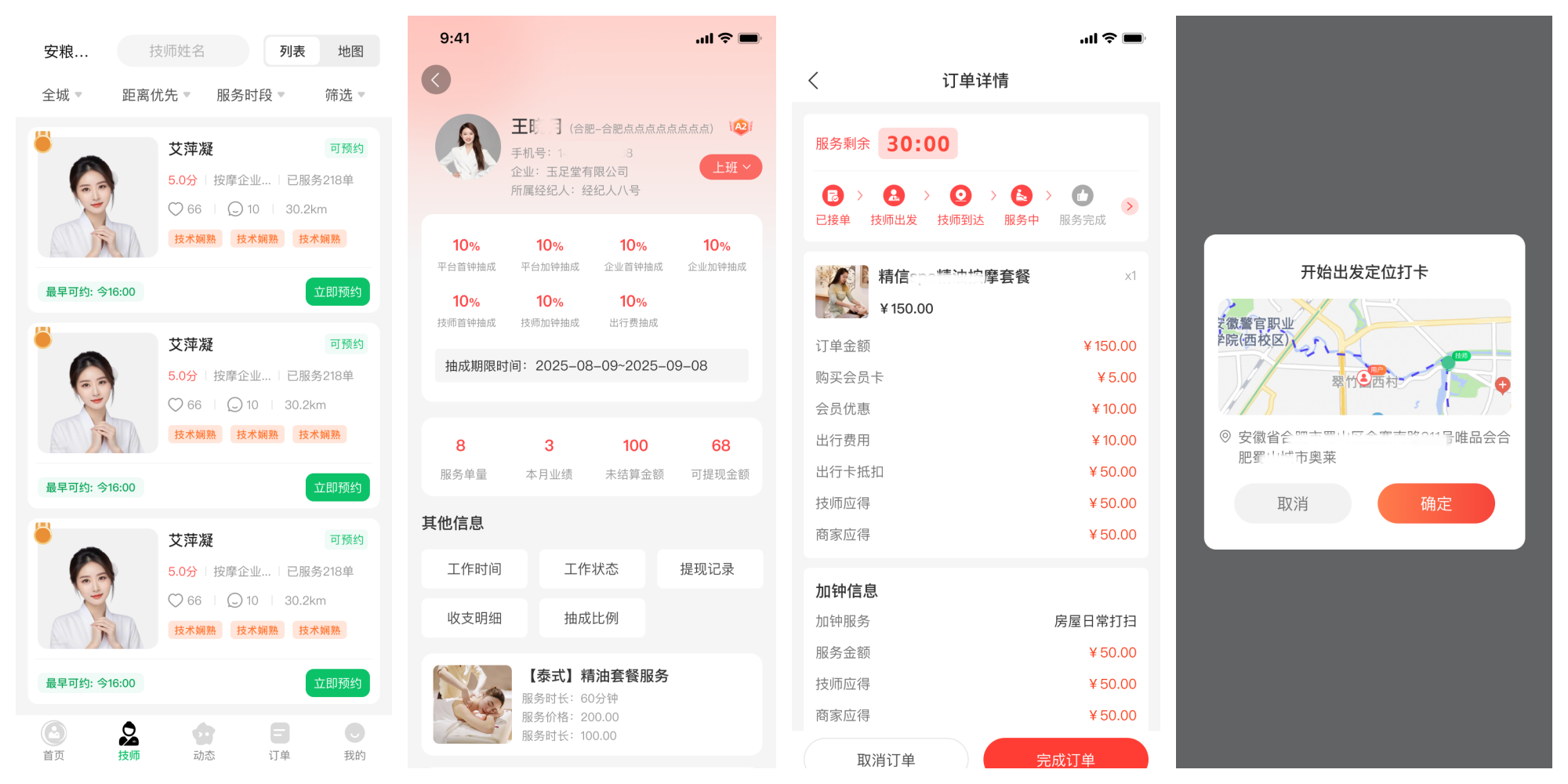 ● 服务端:要能接单派单、导航、记录服务、结算收入、管理考勤。