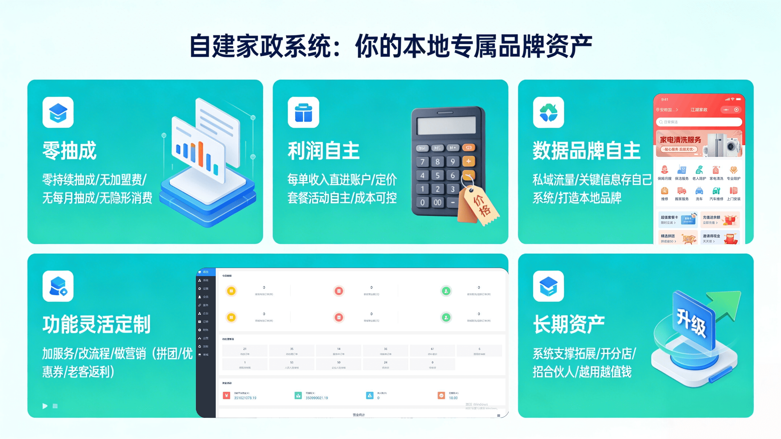 自建不是让你从零敲代码开发,而是选成熟的家政 SaaS 系统搭建自己的平台,看似多一步操作,实则全是核心优势。
