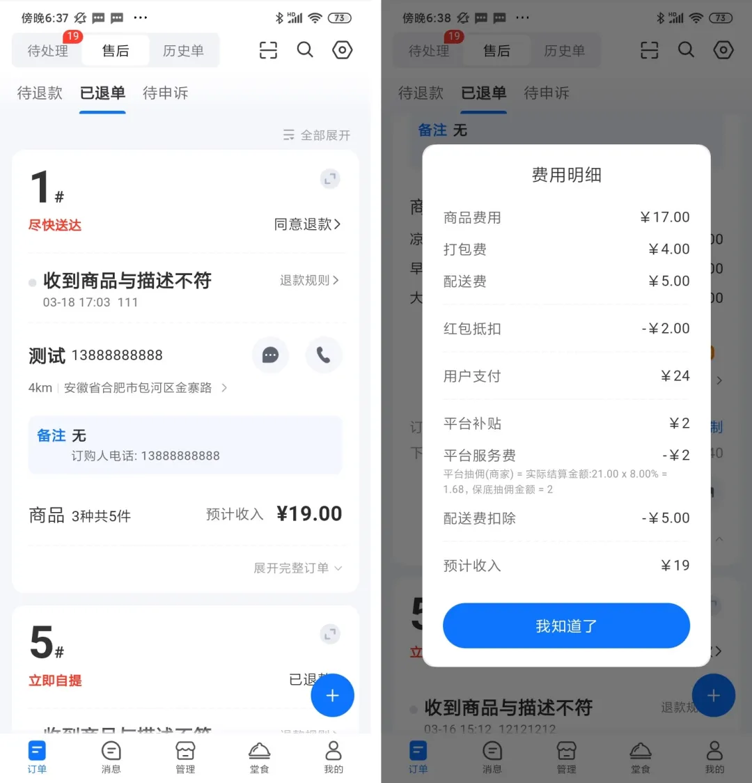 (2)退款限制:已出餐或骑手已取餐的订单,不受“接单后X分钟内可退款”规则限制,出餐后禁止退款。
