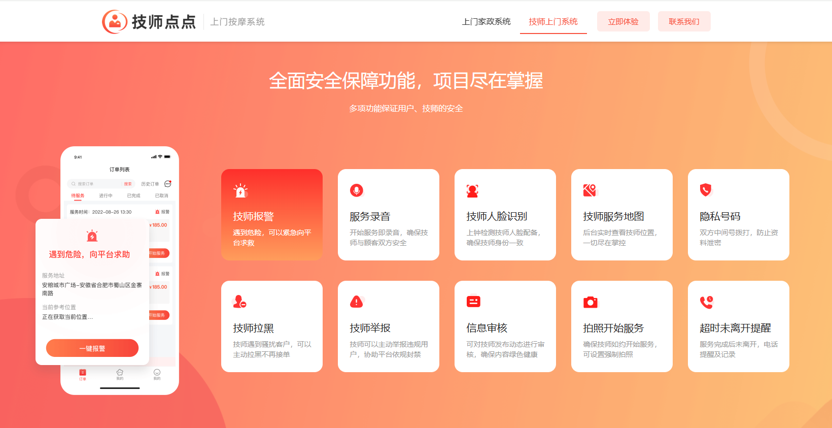 一套像技师点点上门按摩系统这样成熟的系统,应该具备以下能力: