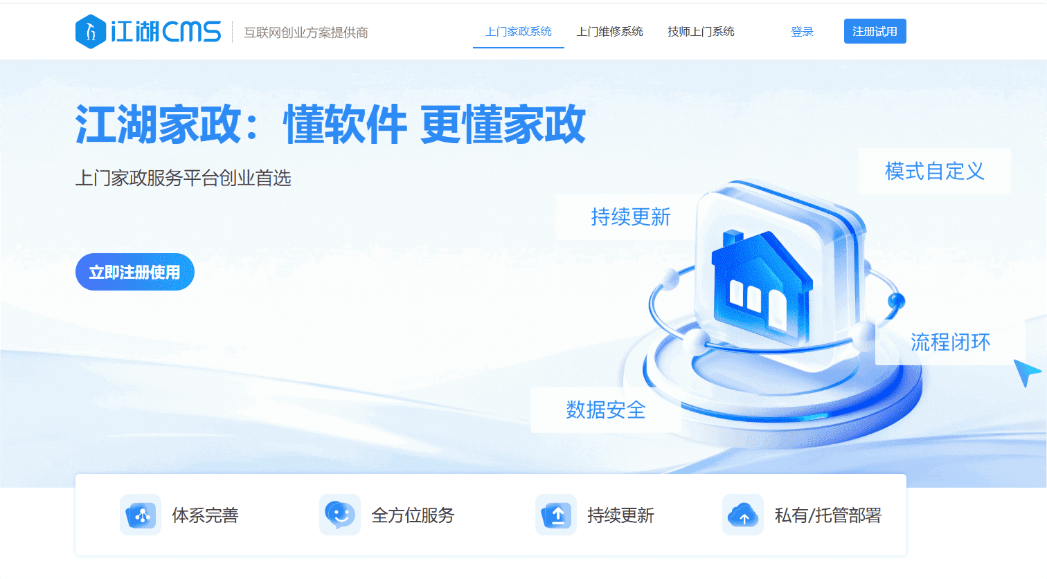 旗下“江湖家政系统”已服务全国众多家政企业,系统架构稳定、功能全面。选择成熟系统,意味着您可以避开从零开发的各种“坑”,直接享受稳定、流畅的平台体验。