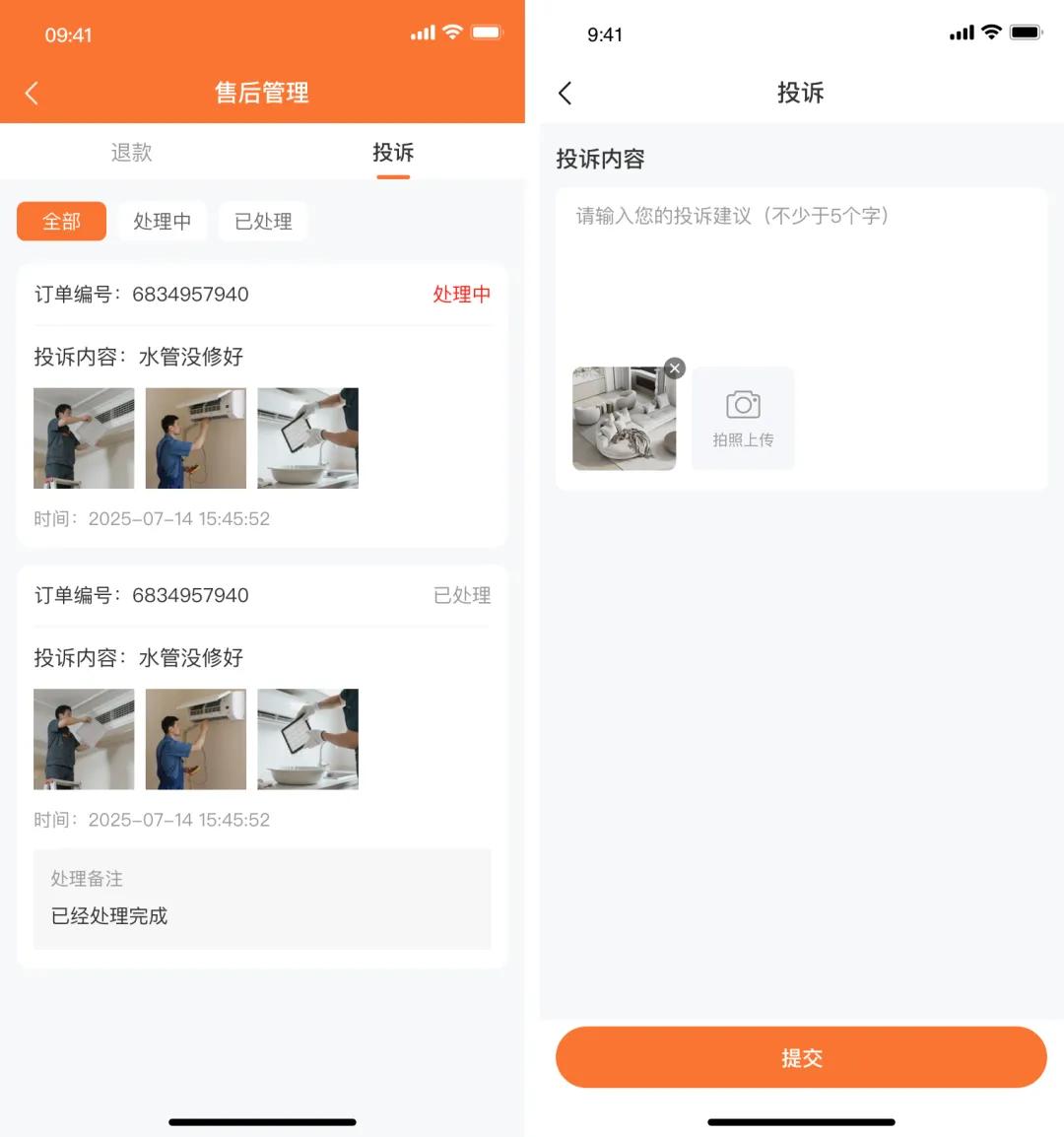 7.投诉管理:用户可投诉师傅,后台增加投诉管理,师傅端同步投诉记录。