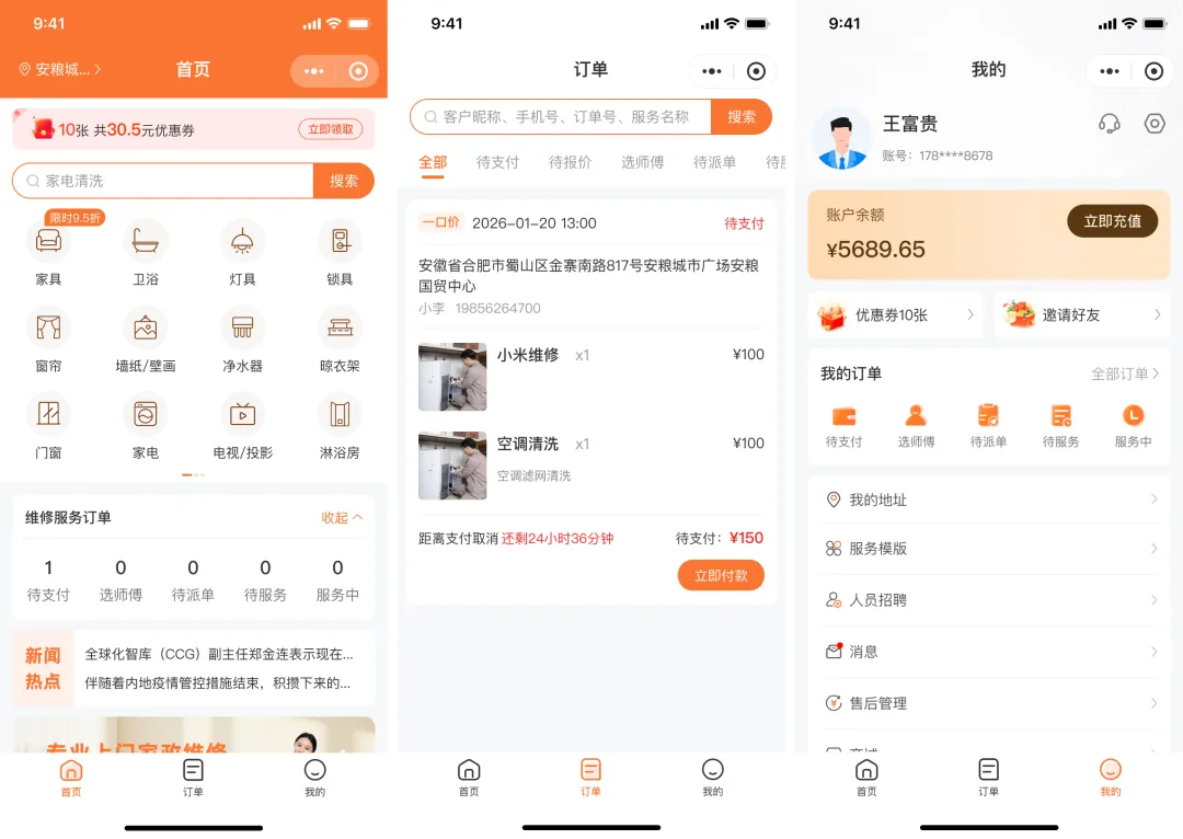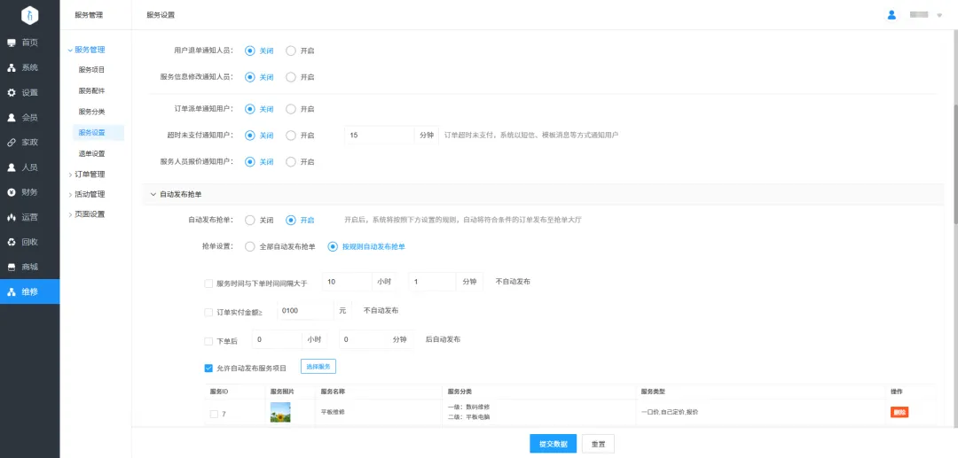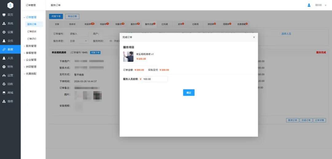 为此,江湖家政从6.0升级至6.5版本,核心聚焦上门维修业务版块重构,在系统底层做了清晰的业务划分,让家政与维修两类服务真正 “各归其位、各司其职”。
