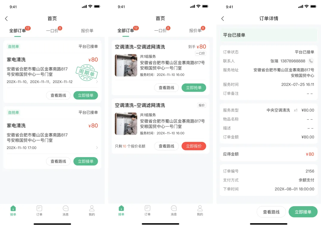 (1)接单(抢单大厅,服务人员可抢单、报价等操作)