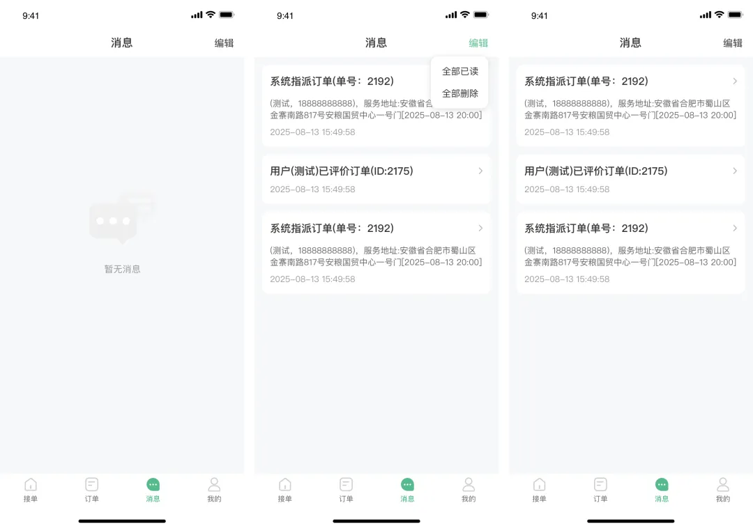 (3)消息(订单相关的通知)