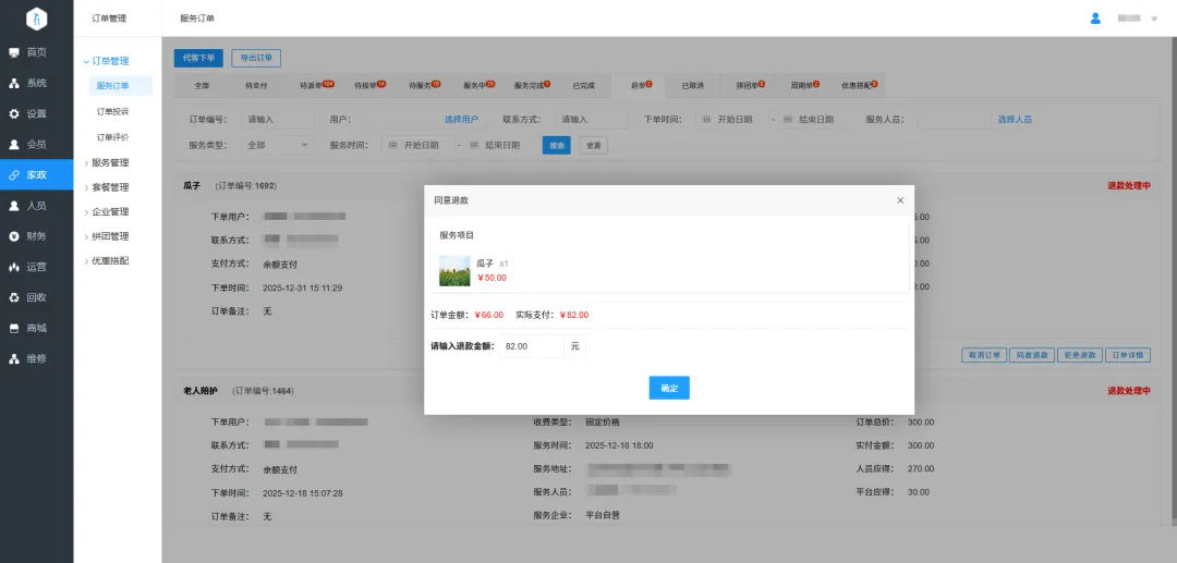 10.退款优化:服务退款增加可自定义金额。