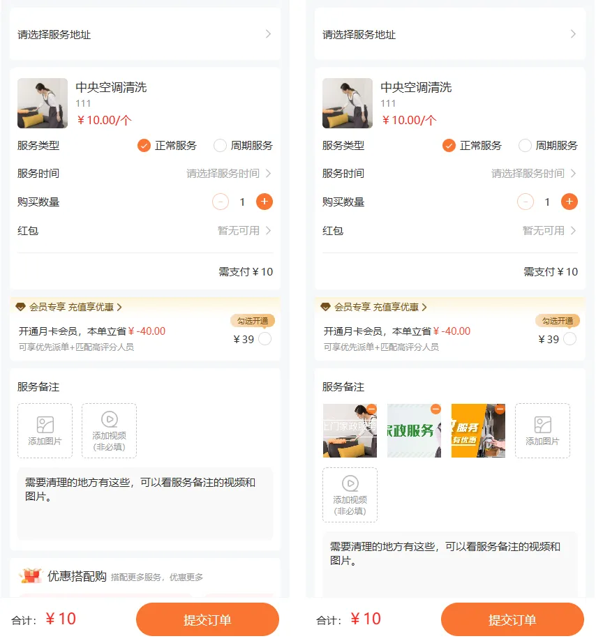 18.家政订单下单优化:用户下单可上传服务备注,视频/照片以及备注说明。