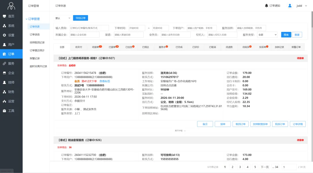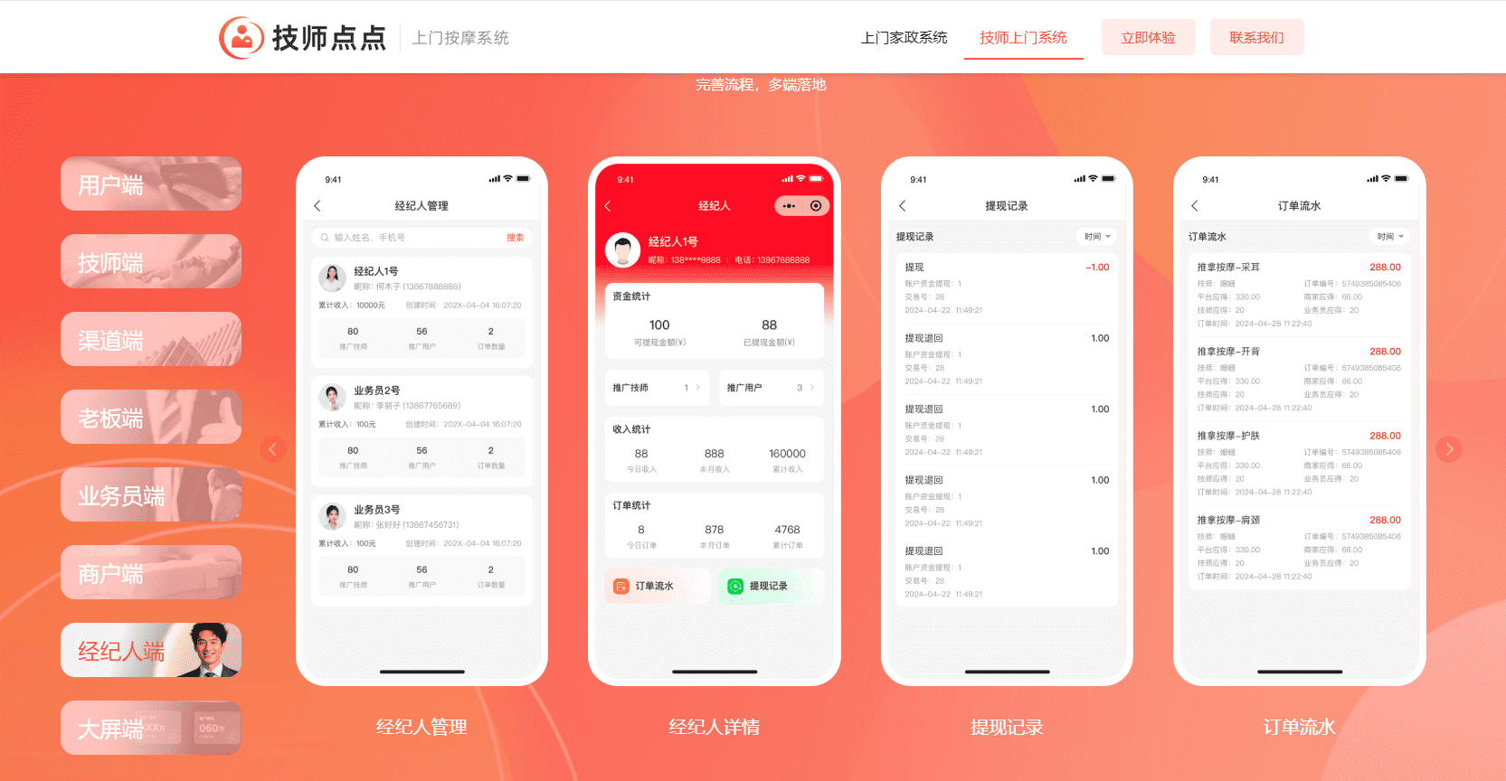 上门预约系统,O2O平台开发,技师管理软件,技师点点上门按摩系统