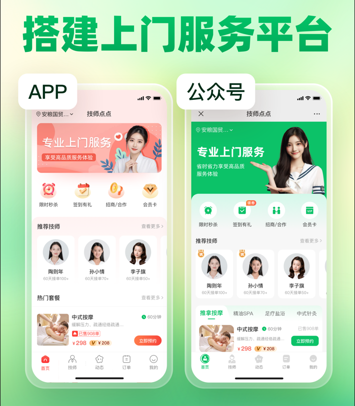 2. 不要一开始就搞APP,微信版本是更好的选择:APP开发成本高、周期长、推广难度大,而微信小程序、公众号无需下载、便捷传播,更契合上门按摩“即时需求”的场景,可降低上门按摩平台定制开发的初期投入与推广成本,后期再根据业务发展,逐步拓展APP终端;