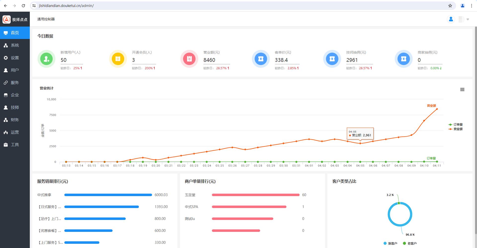 管理后台是平台管控核心,核心是实现对用户、技师、订单、财务的全流程管理,降低运营成本,这也是上门按摩平台定制开发中平台管控的关键。核心功能包括: