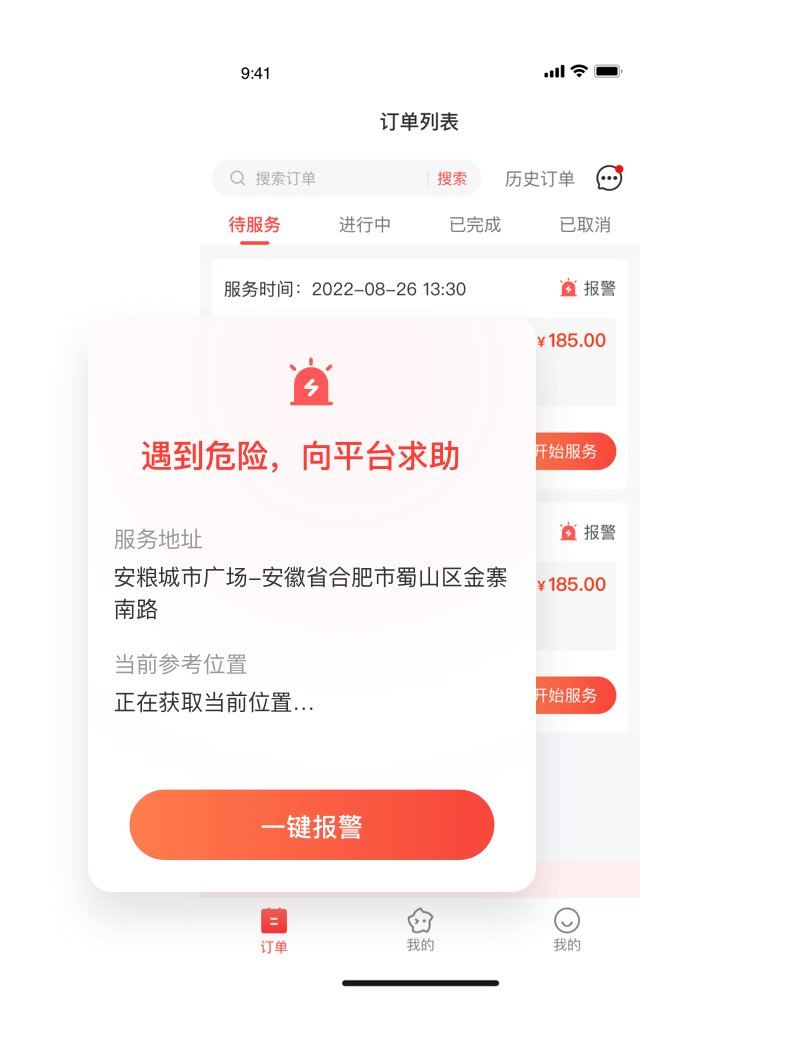 一键报警 & 拉黑举报:服务中遇紧急情况,可一键向平台求助;遇恶意客户可直接拉黑,并向平台举报,从根源上杜绝二次骚扰。