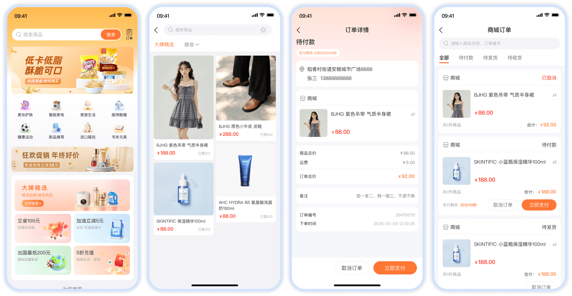 周边商城提供完整的线上商城流程,可关联线上服务进行售卖,有效提高平台客户依赖性