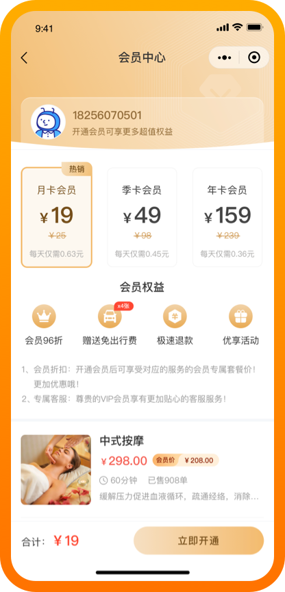 技师点点上门按摩系统,覆盖公众号、小程序、app各端,并且提供多种组合套餐任你选择。覆盖你从创业初期、到创业后期的全部场景